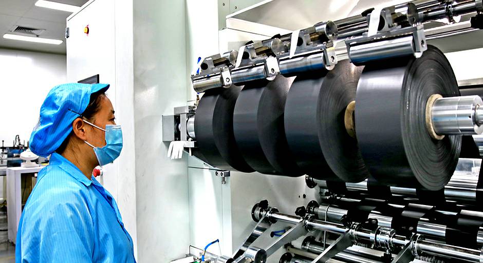 10台卷绕设备,将正负极片、隔膜卷绕在一起,贴胶形成极芯